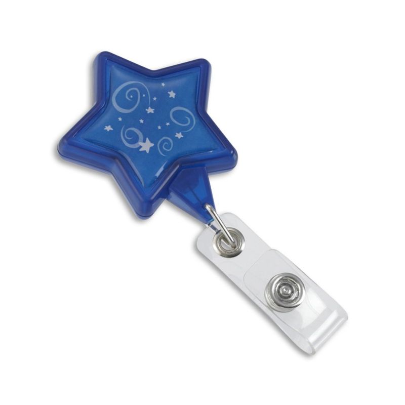 Overview Blue Star Retractable Badge Reel - 25 PackAdd flair and fun to the office with pre-designed retractable badge reels. Easily attaches to an ID badge and clips to a pocket or belt loop.