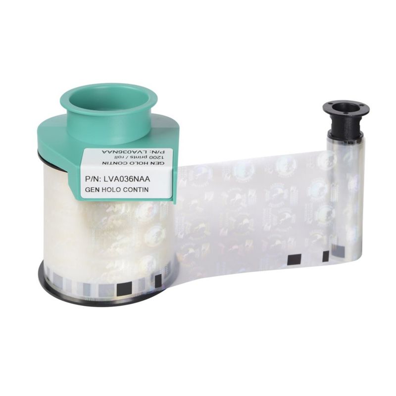 Add security to your badge by including a hologram laminate. These are impossible to forge without the same lamination film and increase the life of your PVC cards by 2 years. The ribbon contain 1200 prints. Continuous varnish is a repeating pattern similar to wallpaper. The pattern will not be placed in the same location of every card.