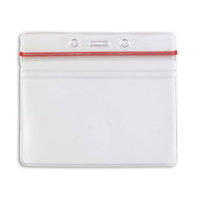 Horizontal ID Badge Holder with Sealable Red Stripe - 50 Pack