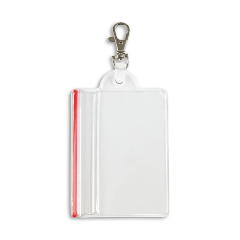 This sealable vertical badge holder offers clear visibility and durable protection from the elements. It also includes a lobster claw attachment that easily and securely attaches to a belt, purse, key chain, lanyard, or pocket loop.
